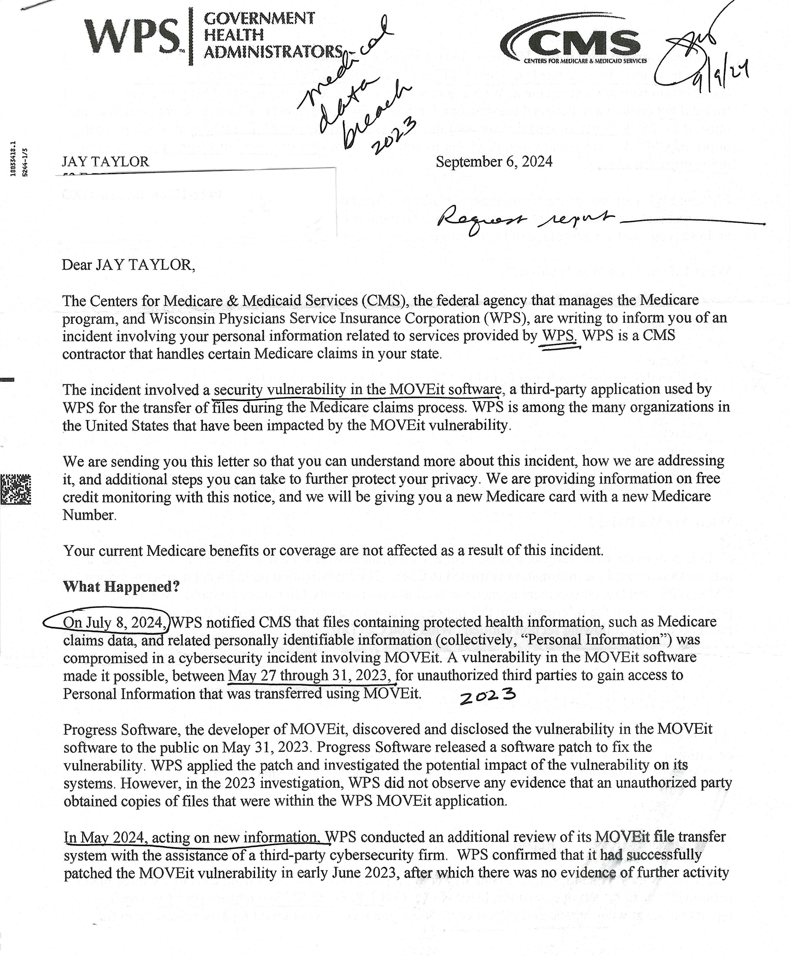 The document above was received 3 days ago explaining a hack of WPS, a company I’ve never heard of. Of course, they apologize for being breached. How does that help me? They then offer that so-called “free credit monitoring” for a year, which does little to protect me from invasions of my privacy or misuse of my information. All it does is provide them protection in the law. The information someone needs to open accounts in my name or attempt to impersonate me with providers is “out there” forever.